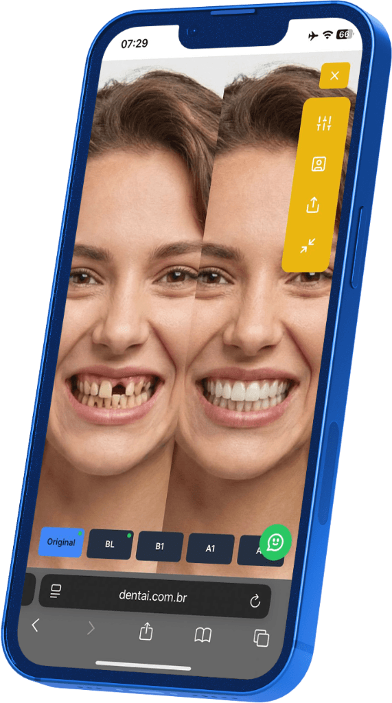 Com a Dent.AI, você mostra ao paciente, em segundos, a melhor versão do sorriso dele.